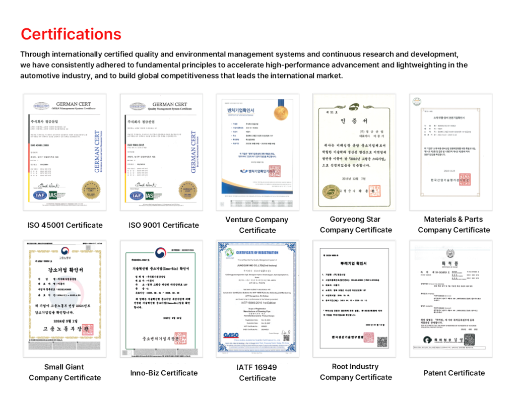 we have consistently adhered to fundamental principles to accelerate high-performance advancement and lightweighting in the automotive industry, and to build global competitiveness that leads the international market.